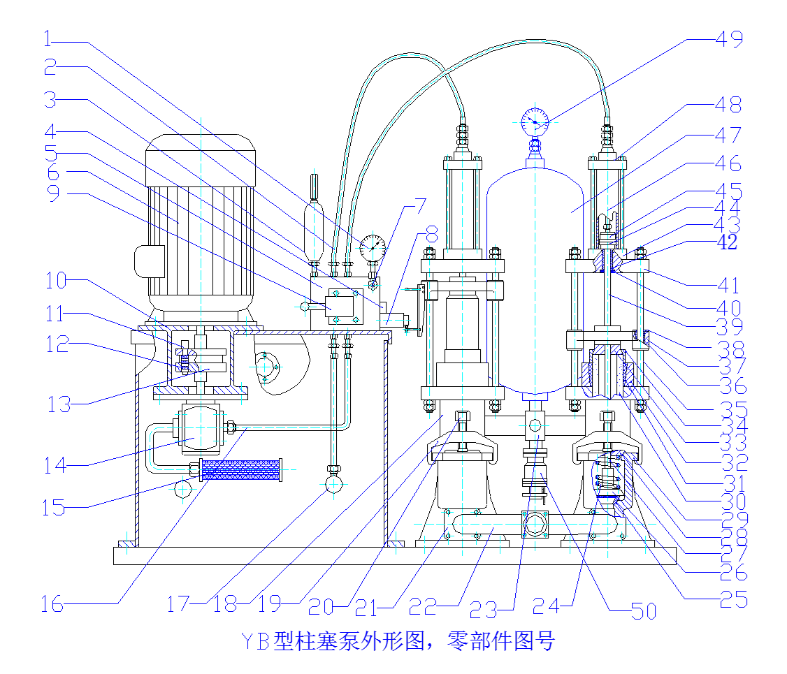 (7)應從空氣罐47的壓力表上看到泥漿壓力波動值大于0.2MPA時,必須停泵,打開下面的閥門,放掉泥漿,補進空氣,必要時卸下空氣罐上的壓力表,從上端口沖洗空氣罐。